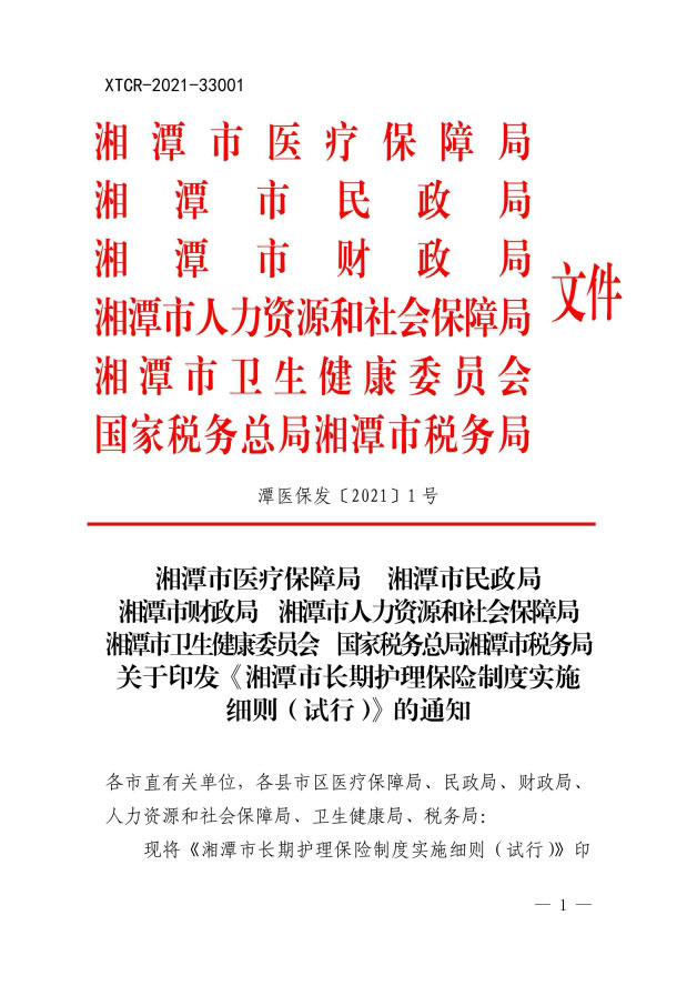 潭醫(yī)保發(fā)〔2021〕1號湘潭市長期護(hù)理保險實施細(xì)則